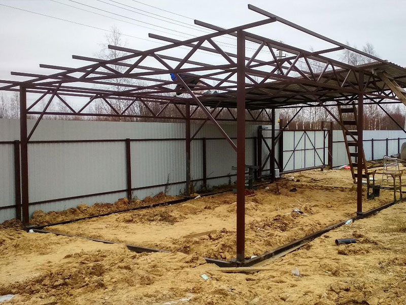 При строительстве арочного навеса сооружают каркас в форме полукруга.